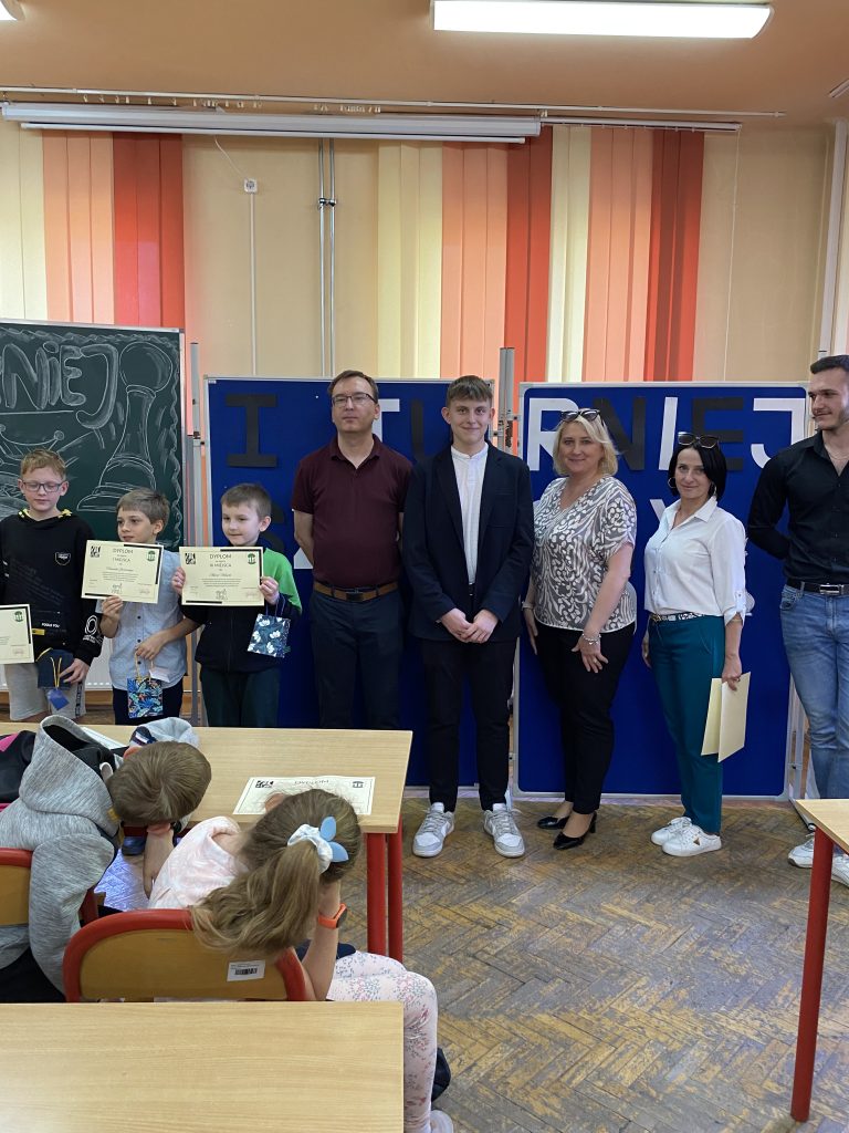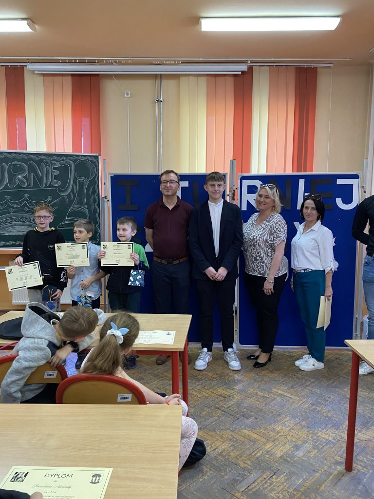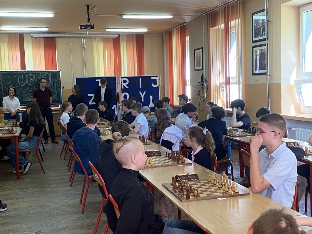 We wtorek (09.04.2024) w I Liceum Ogólnokształcącym im. Tadeusza Kościuszki odbył się I Konkurs Szachowy Jaworznickich Szkół Podstawowych. Konkurs został zorganizowany przez I Liceum Ogólnokształcące im. Tadeusza Kościuszki przy współorganizacji Wydziału Edukacji Urzędu Miejskiego w Jaworznie. Zainteresowanie konkursem było ogromne! W potyczkach szachowych wzięło udział 38 zawodników z jaworznickich szkół podstawowych, którzy pod okiem wybitnych sędziów dzielnie walczyli o zwycięstwo. Po zaciętej rywalizacji wyłoniono zdobywców I, II i III miejsca, jednak żaden z zawodników nie opuścił sali konkursowej bez symbolicznego upominku.