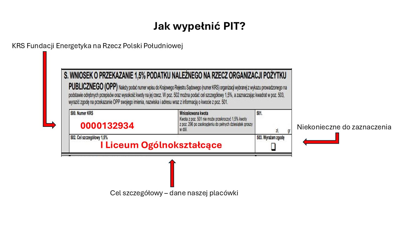 Przekaż 1.5% podatku na naszą szkołę I Liceum Ogólnokształcące