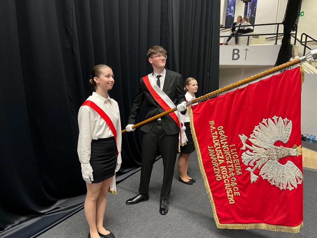 17 kwietnia 2024 odbył się Wojewódzki Konkurs Pocztów Sztandarowych oraz Wiedzy o Polskich Symbolach i Barwach Narodowych. Rywalizacja była ogromna! Wyśmienicie przygotowane Poczty Sztandarowe oceniane były, m. in. za: przemarsz krokiem defiladowym, ustawienie, postawy, zwroty, wydawanie właściwych komend, chwyty sztandaru, prezentację sztandaru, przejście przez niskie drzwi oraz za odpowiednie umundurowanie. Poczet Sztandarowy w składzie: Julia Mucha (Dowódca), Wojciech Jabłoński (Sztandarowy), Zuzanna Ciołczyk (Asysta) zdobył I miejsce w kategorii szkół ponadpodstawowych, utrzymując tym samym zwycięski tytuł sprzed roku. Gratulujemy i dziękujemy za wybitne reprezentowanie ILO!!! Z dumą dołączamy fotorelację z tego wydarzenia.